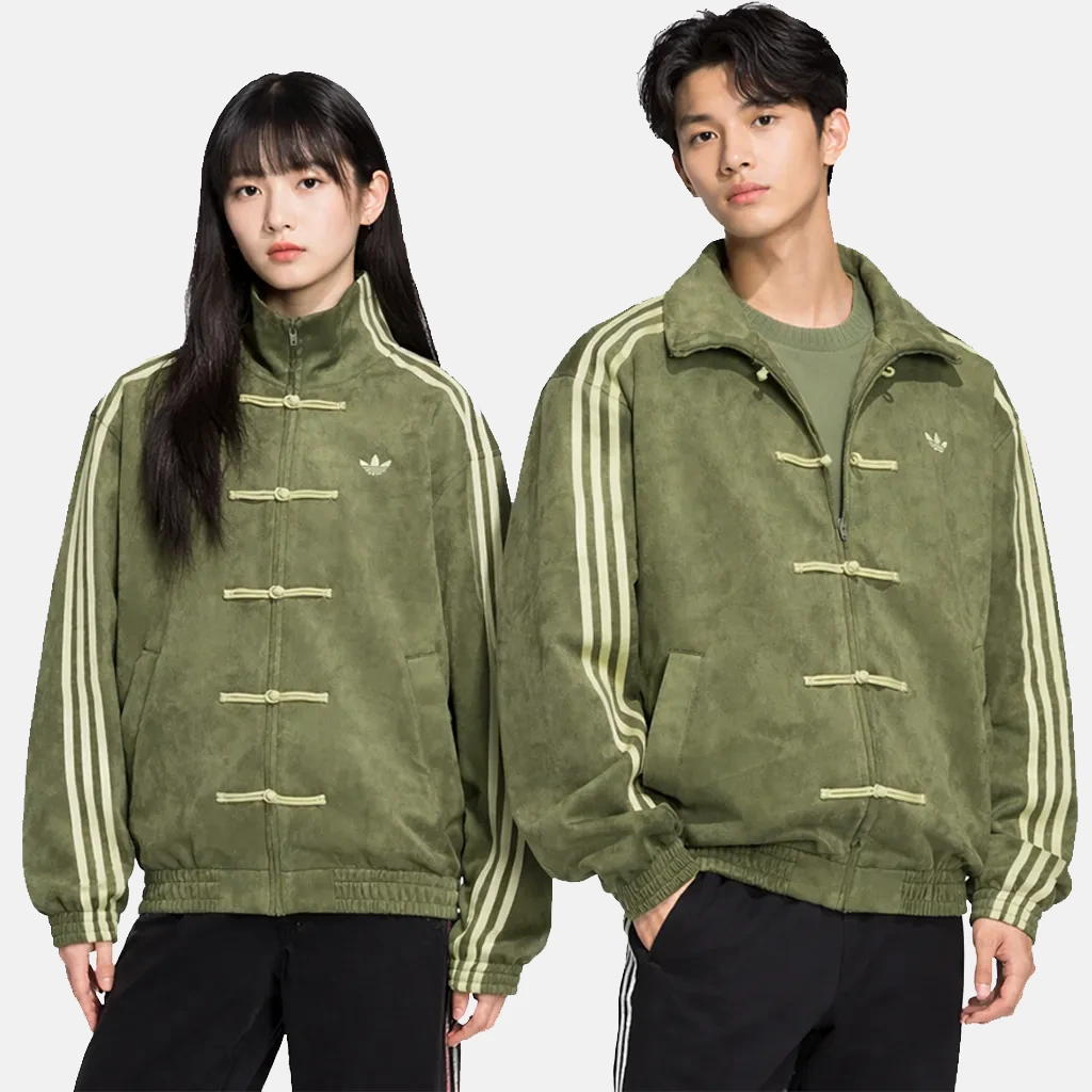 Functionality is seamlessly integrated into the design of this Adidas Chinese New Year Green Jacket, which is crafted with the premium quality suede leather for the outer and soft viscose lining for the inner. This jacket offers toggle front, which makes it very easy to put on while on the go, along with a stand collar, elastic cuffs, and two outside plus one inside pocket. This jacket is a perfect option for elevating your traditional look and for better, improved casual outdoor style.